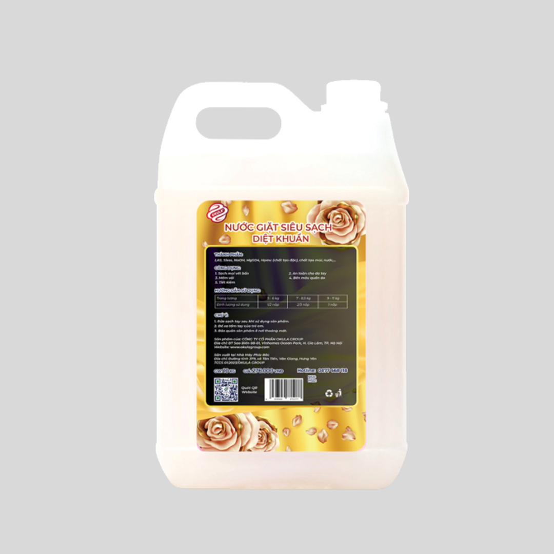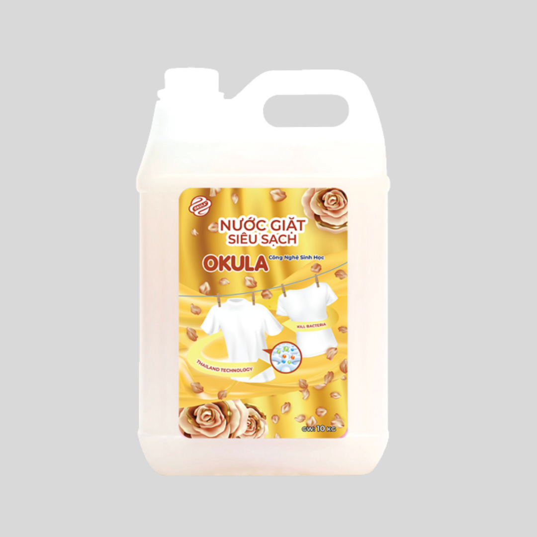 Nước giặt siêu sạch OKULA 10KG phù hợp sử dụng cho cả giặt tay và giặt máy, mang lại sự tiện lợi và hiệu quả cho công việc giặt giũ hằng ngày của gia đình.
