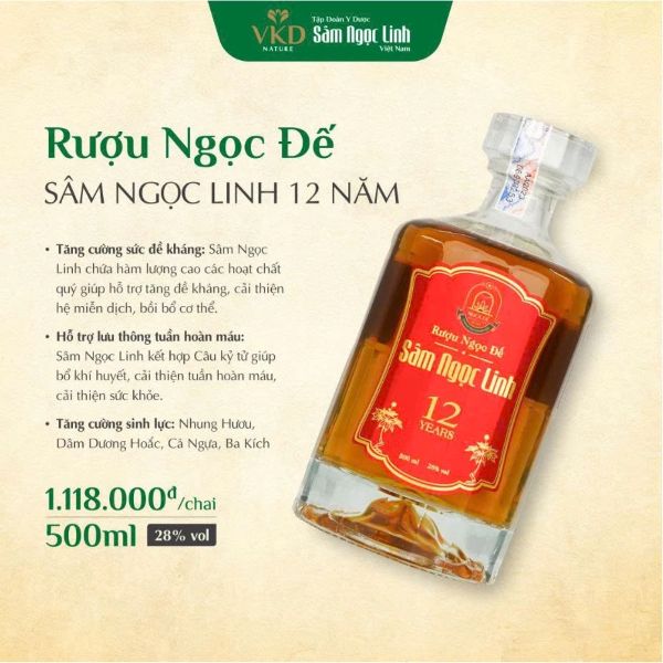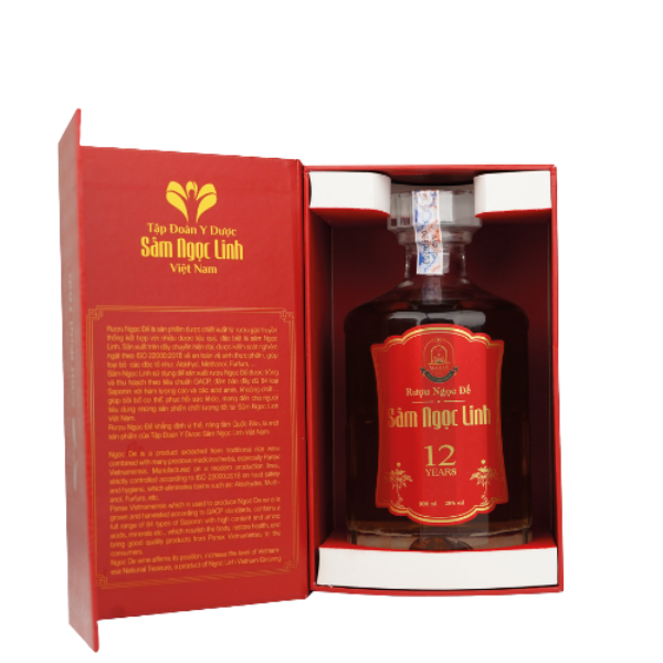 Rượu Ngọc Đế Sâm Ngọc Linh 12 năm – 500ml là dòng rượu sâm cao cấp được nghiên cứu và sản xuất bởi